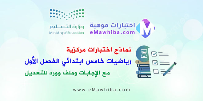 نماذج اختبارات مركزية رياضيات خامس ابتدائي الفصل الأول مع الإجابات وملف وورد للتعديل