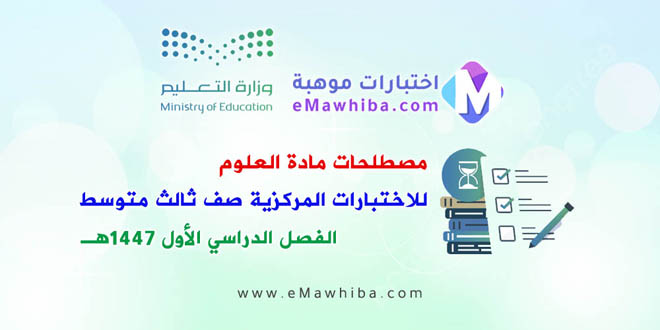 مصطلحات مادة العلوم للاختبارات المركزية صف ثالث متوسط الفصل الدراسي الأول 1447هـ ..