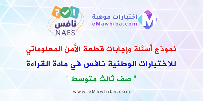 نموذج أسئلة وإجابات قطعة الأمن المعلوماتي للاختبارات الوطنية نافس في مادة القراءة صف ثالث متوسط