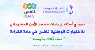 نموذج أسئلة وإجابات الاختبارات الوطنية نافس في مادة القراءة صف سادس ابتدائي ..